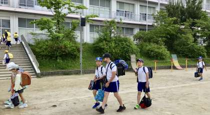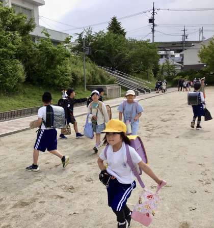 5月19日(月)の梅坪小(1)今朝の登校風景