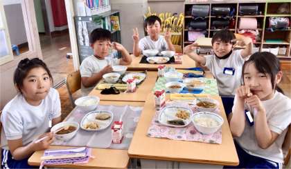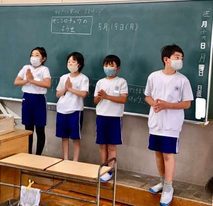 5月19日(月)の梅坪小(5)3年生の会食風景