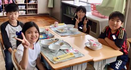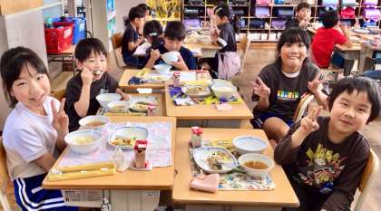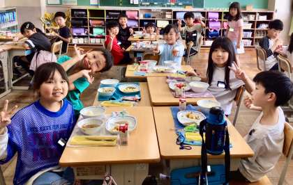 5月19日(月)の梅坪小(7)3年生の会食風景