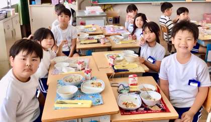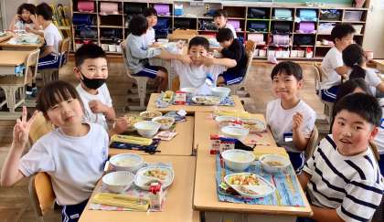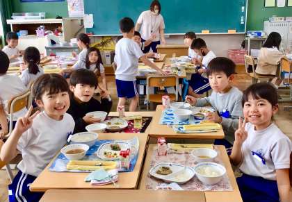 5月19日(月)の梅坪小(9)3年生の会食風景