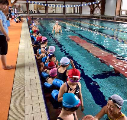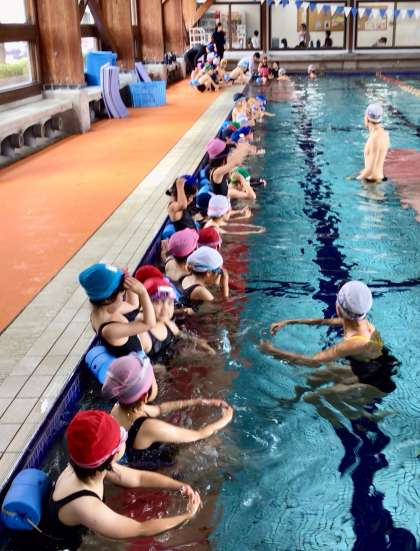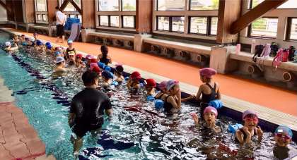 2年生もすっかり水に慣れ、顔をつけて泳げるようになってきました!