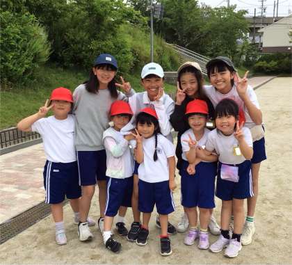6年生のお姉さんたちが、1年生と楽しく鬼ごっこです!