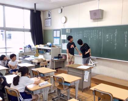 体育委員会では、遊具の安全な使い方を呼びかけるために、ポスターか動画かで意見を出し合い、動画に決まりました。