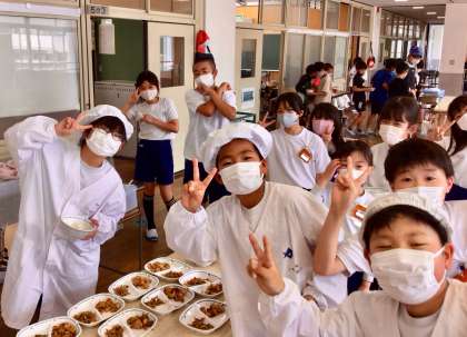 今日は、めっちゃ元気な5年生の給食風景をお届けいたします♪