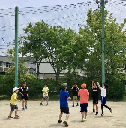 高学年男子、今日はバレーボールに熱中!