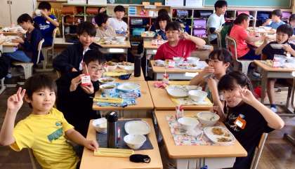 5月21日(水)の梅坪小(13)5年生の給食風景