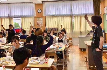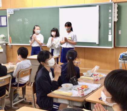 5月22日(木)の梅坪小(10)6年生の給食風景