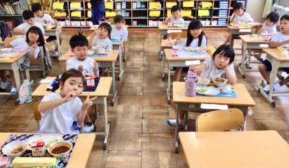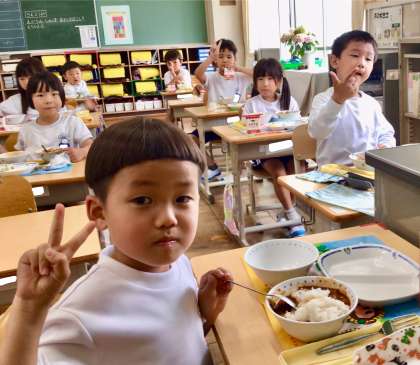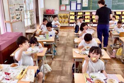 5月23日(金)の梅坪小(7)1年生の給食風景