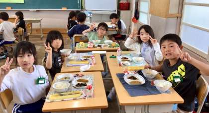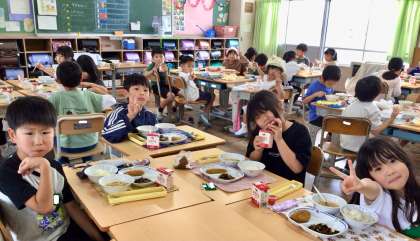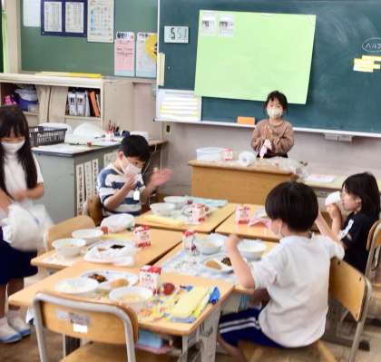 5月26日(月)の梅坪小(13)2年生の給食風景