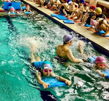 5月26日(月)の梅坪小(5)水泳授業 平芝スイミングプール