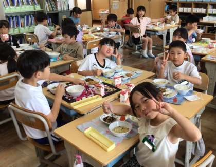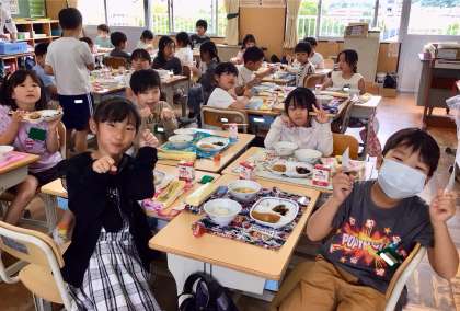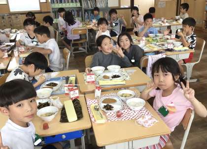 5月26日(月)の梅坪小(11)2年生の給食風景