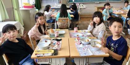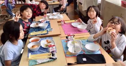 5月27日(火)の梅坪小(8)3年生の給食風景