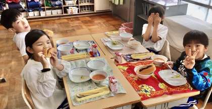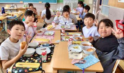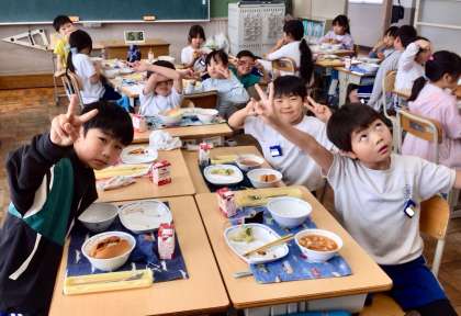5月27日(火)の梅坪小(10)3年生の給食風景
