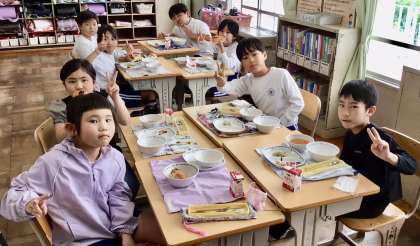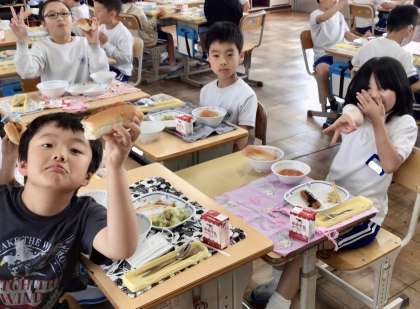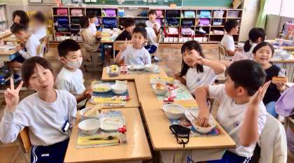5月27日(火)の梅坪小(11)3年生の給食風景