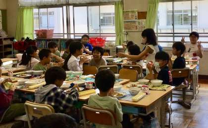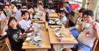 5月28日(水)の梅坪小(8)4年生の給食風景