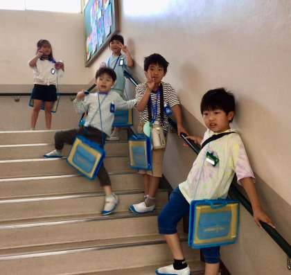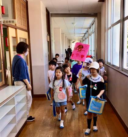2年生から招待状がわりのメダルをもらった1年生。