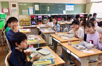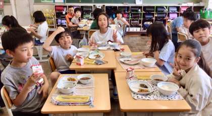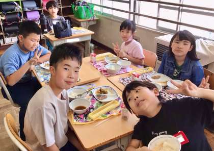 5月28日(水)の梅坪小(12)4年生の給食風景
