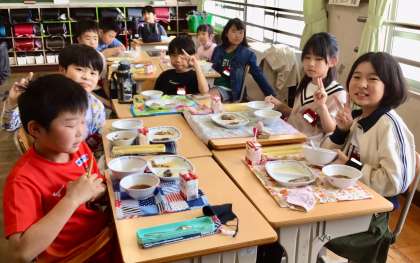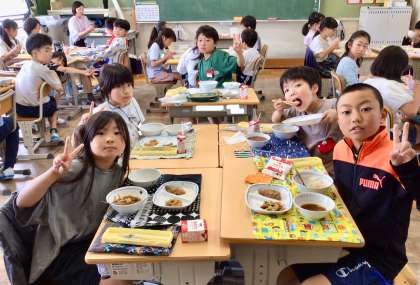 5月28日(水)の梅坪小(13)4年生の給食風景