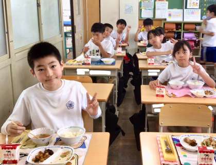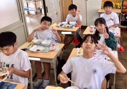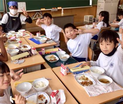 5月29日(木)の梅坪小(9)5年生の給食風景
