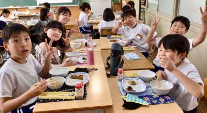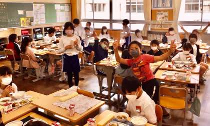 5月29日(木)の梅坪小(13)5年生の給食風景