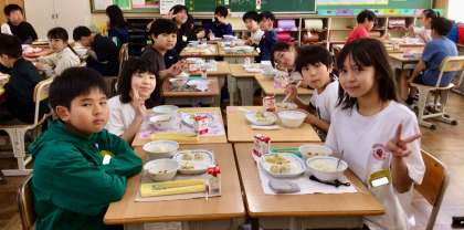 5月30日(金)の梅坪小(9)6年生の給食風景