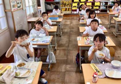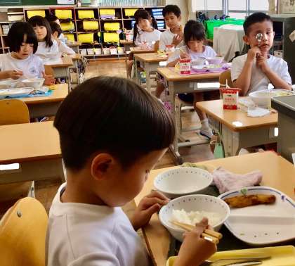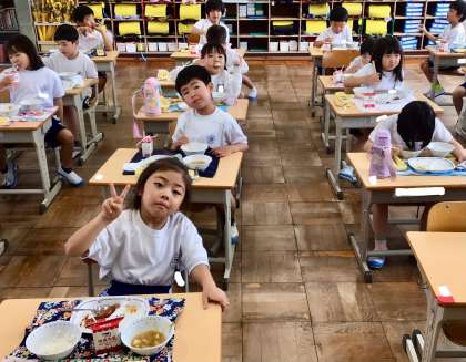 6月2日(月)の梅坪小(8)1年生の給食風景