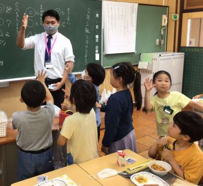 6月3日(火)の梅坪小(4)2年生の給食風景