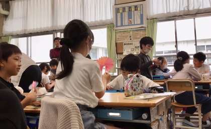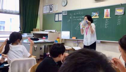 教師が用意した具体物の画像をタブレットから投影し、子どもたちの主体的な学びを引き出していました!