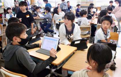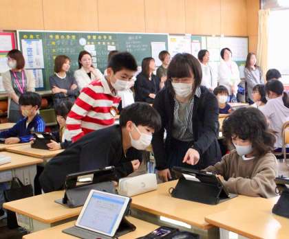 この授業でもタブレットを使って、協働的な学習活動を取り入れることで、理解が深まったようです。