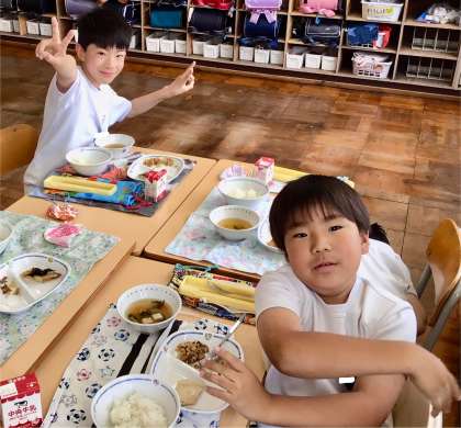 6月4日(水)の梅坪小(7)3年生の給食風景