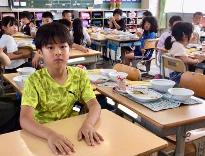 6月4日(水)の梅坪小(8)3年生の給食風景