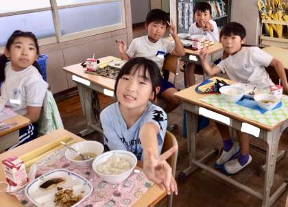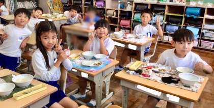 6月4日(水)の梅坪小(12)3年生の給食風景