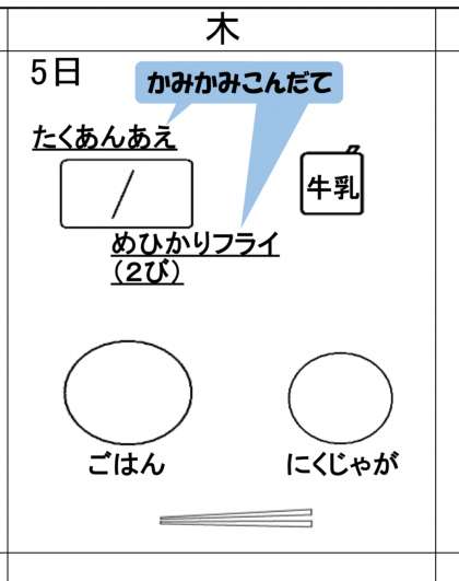 今日のかみかみメニューは、めひかりフライとたくあんあえです!