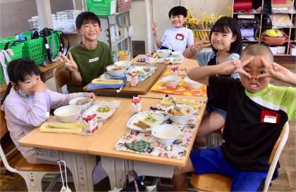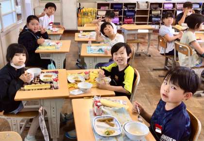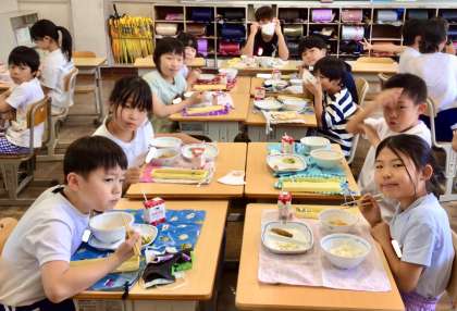 6月5日(木)の梅坪小(12)4年生の給食風景