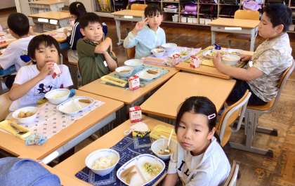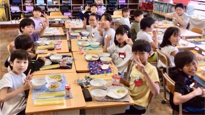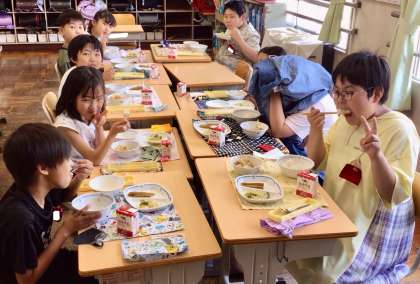 6月5日(木)の梅坪小(14)4年生の給食風景