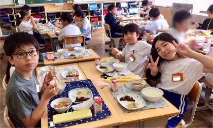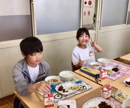 6月6日(金)の梅坪小(7)5年生の給食風景