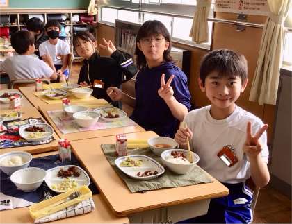 6月6日(金)の梅坪小(8)5年生の給食風景