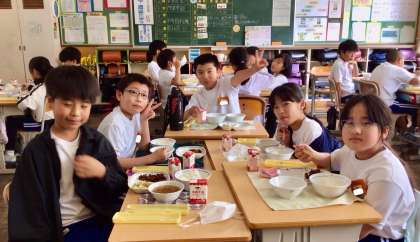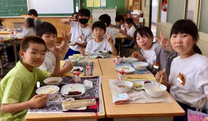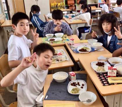 6月6日(金)の梅坪小(9)5年生の給食風景