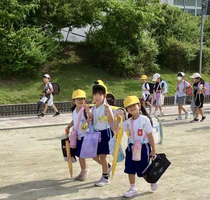 6月9日(月)の梅坪小(2)今朝の登校風景