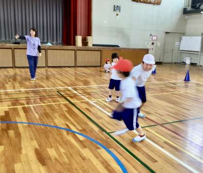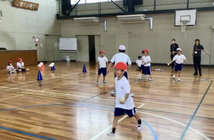 今日は、コートを決めて ボール入れゲームで盛り上がりました。
