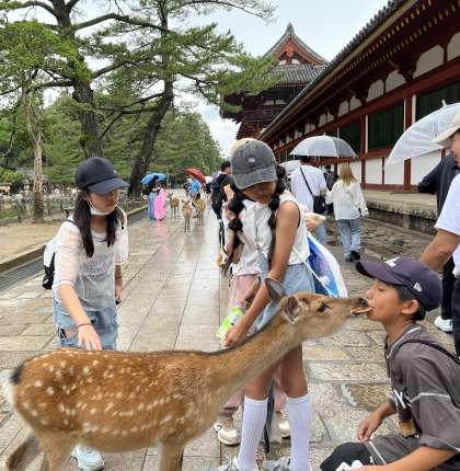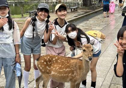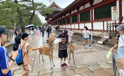 鹿とたわむれる。