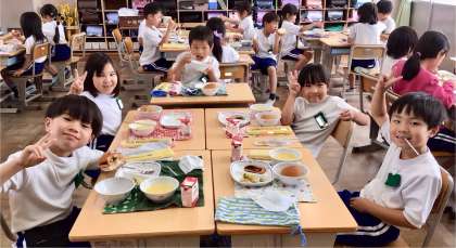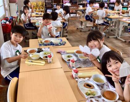 6月12日(木)の梅坪小(7)2年生の給食風景