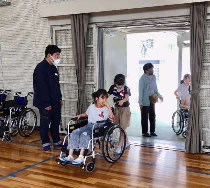 社会福祉協議会の皆様をお招きし、車椅子体験に加えて、障がいについての講話もしていただきました。