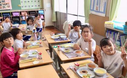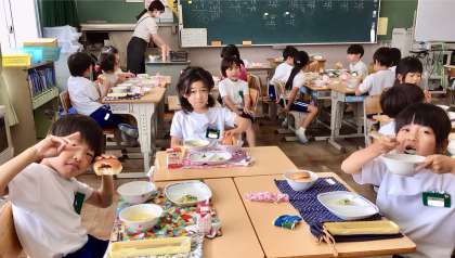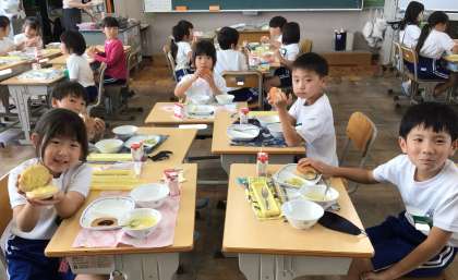 6月12日(木)の梅坪小(8)2年生の給食風景