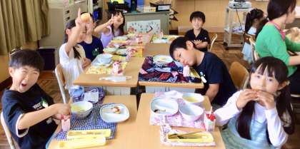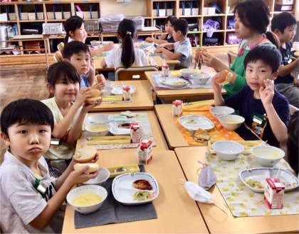 6月12日(木)の梅坪小(12)2年生の給食風景