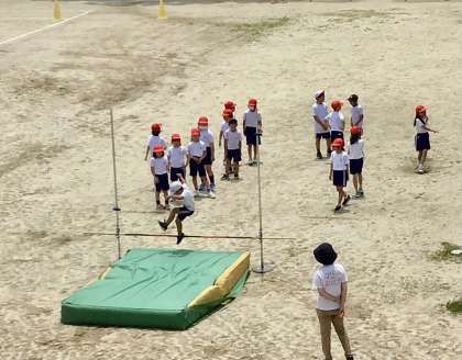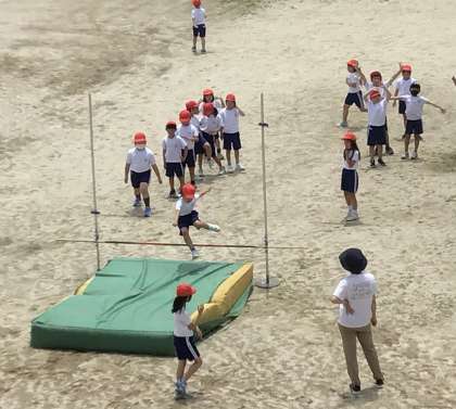 楽しさを感じながら、高跳びの跳び方を知るとともに、短い助走からでも力強く踏み切って、より高く跳べるようになることを目指していました!