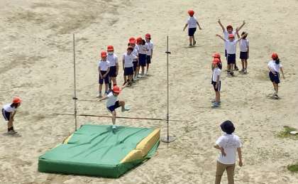 中学年の高跳びは、跳ぶことについて友達と競い合う楽しさや、リズムよく跳ぶ心地よさを味わうことができる運動です。