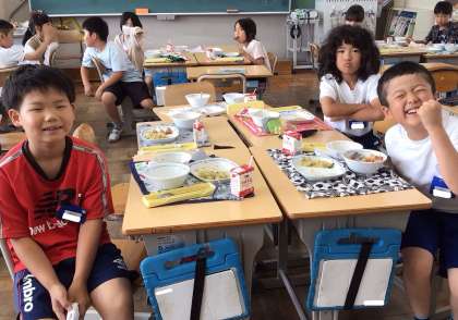 6月13日(金)の梅坪小(11)3年生の給食風景