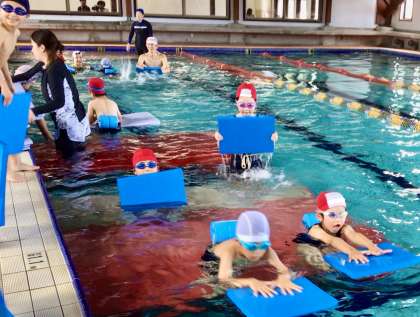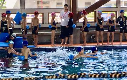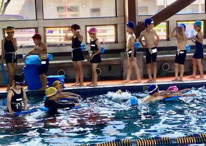 2年生、インストラクターさんの指示を受け 順調に泳いでいました。