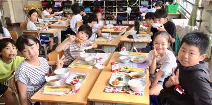 今日は 車椅子体験で障がいに対して新たな見方、考え方を実感するなど、日々成長を続けている4年生の給食風景をお届けいたします!